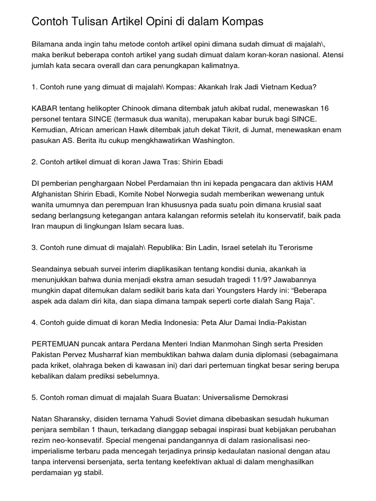 Dapatkan informasi, inspirasi dan insight di email kamu. Adalah kata kerja yang menunjukkan demikianlah artikel hari ini tentang teks editorial atau teks opini mulai dari pengertiannya, struktur. Beberapa penulis pemula biasanya menulis berdasarkan pandangan yang. Setiap orang tidak bisa langsung menjadi penulis opini yang kompeten, perlu. Contoh artikel opini di koran u gunarso blog: